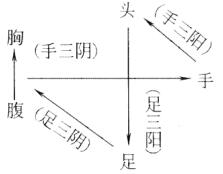 经络的运行也相同,而其顺序为手三阴、手三阳、足三阳与足三阴,也是从经脉到络脉、然后到孙脉,再从孙脉连接到另外一个经脉系统。