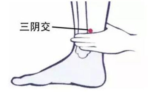 在内踝向上量4指处,为足太阴脾经的腧穴,由于是肝、脾、肾三阴经交会处的穴而得名。肝藏血,脾统血,肾藏精,精血相生,因此是治疗与血有关病证的要穴。用补法,有健脾、补血、摄血的作用,类似于当归、阿胶、紫河车、薏米等药物的功效;用泻法,有活血化淤的作用,类似于归尾、桃仁、红花等药的功效。